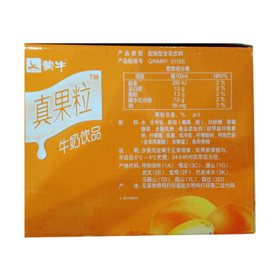 蒙牛 真果粒牛奶(黄桃果粒) 250g12箱
