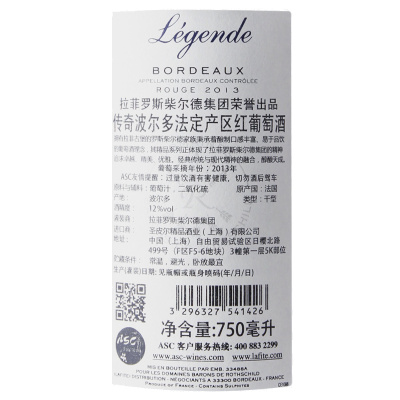 法国原瓶进口拉菲传奇波尔多干红葡萄酒750ml*6瓶