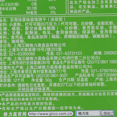 格力高 百奇装饰饼干(抹茶味) 50g/袋