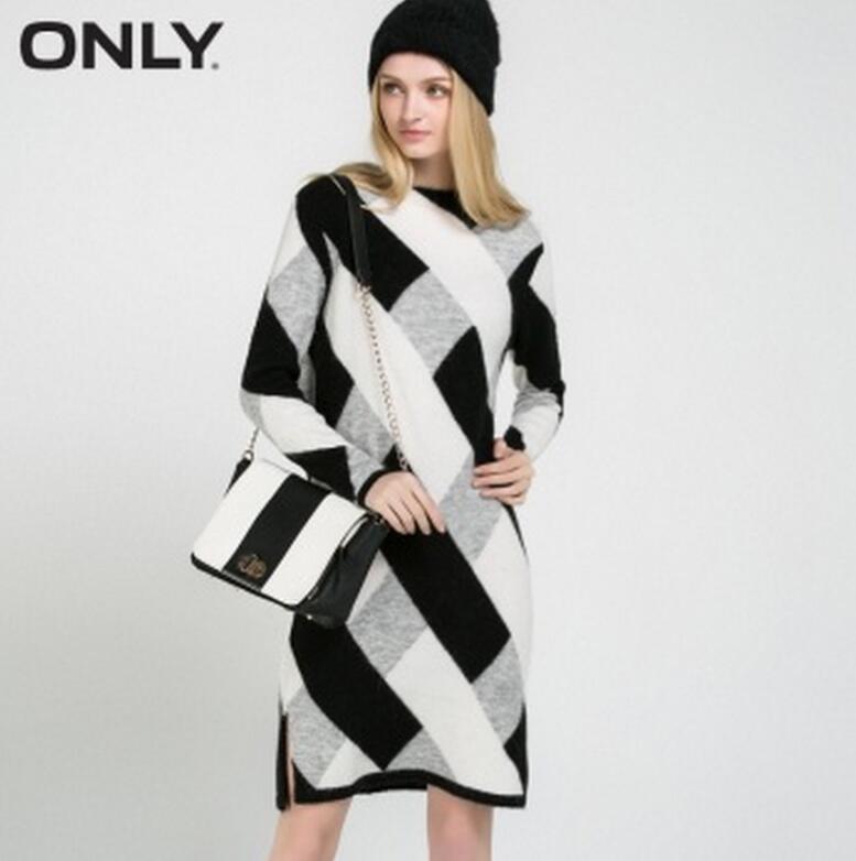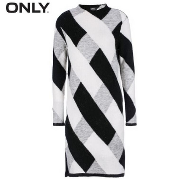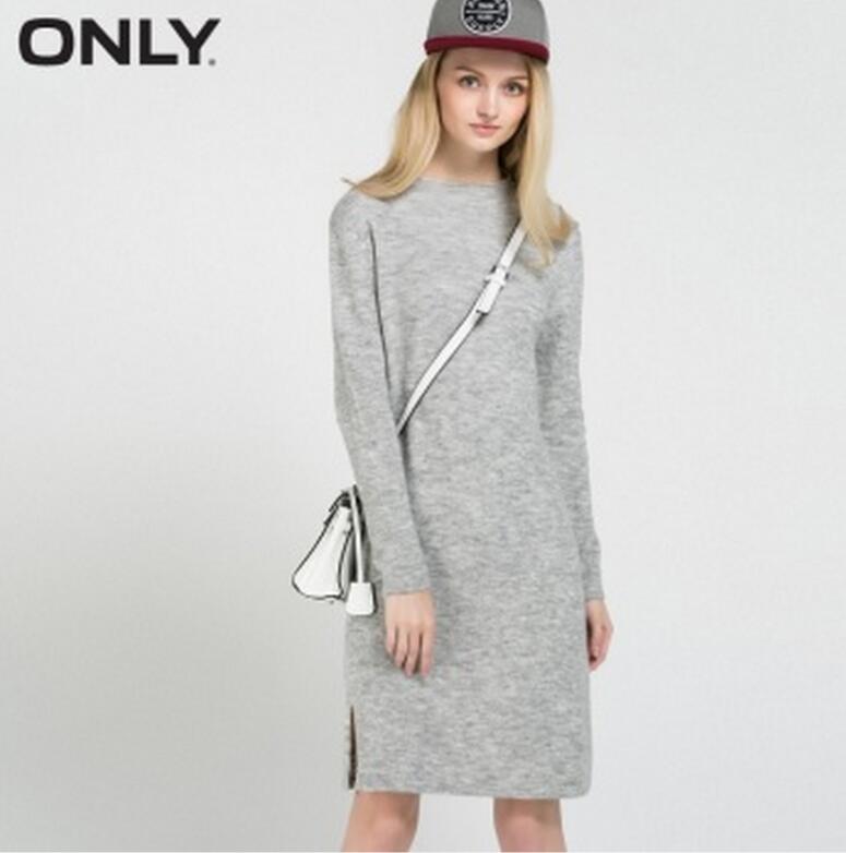 服装鞋包 > 女装 > 连衣裙1 > ONLY > ONLY冬装新品宽松圆领底摆开叉设计针织连衣裙女
