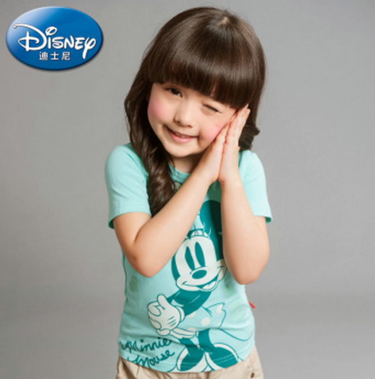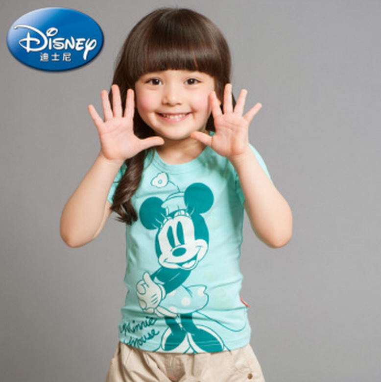 迪士尼 可爱印花百搭时尚短袖T恤 蓝绿