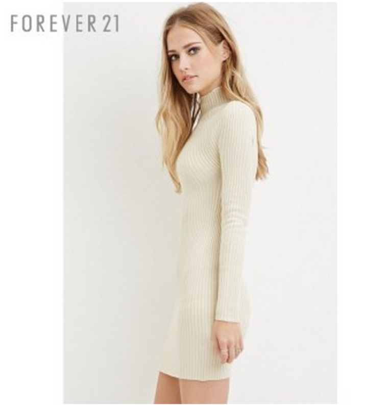 FOREVER21 小高领修身长袖针织连衣裙